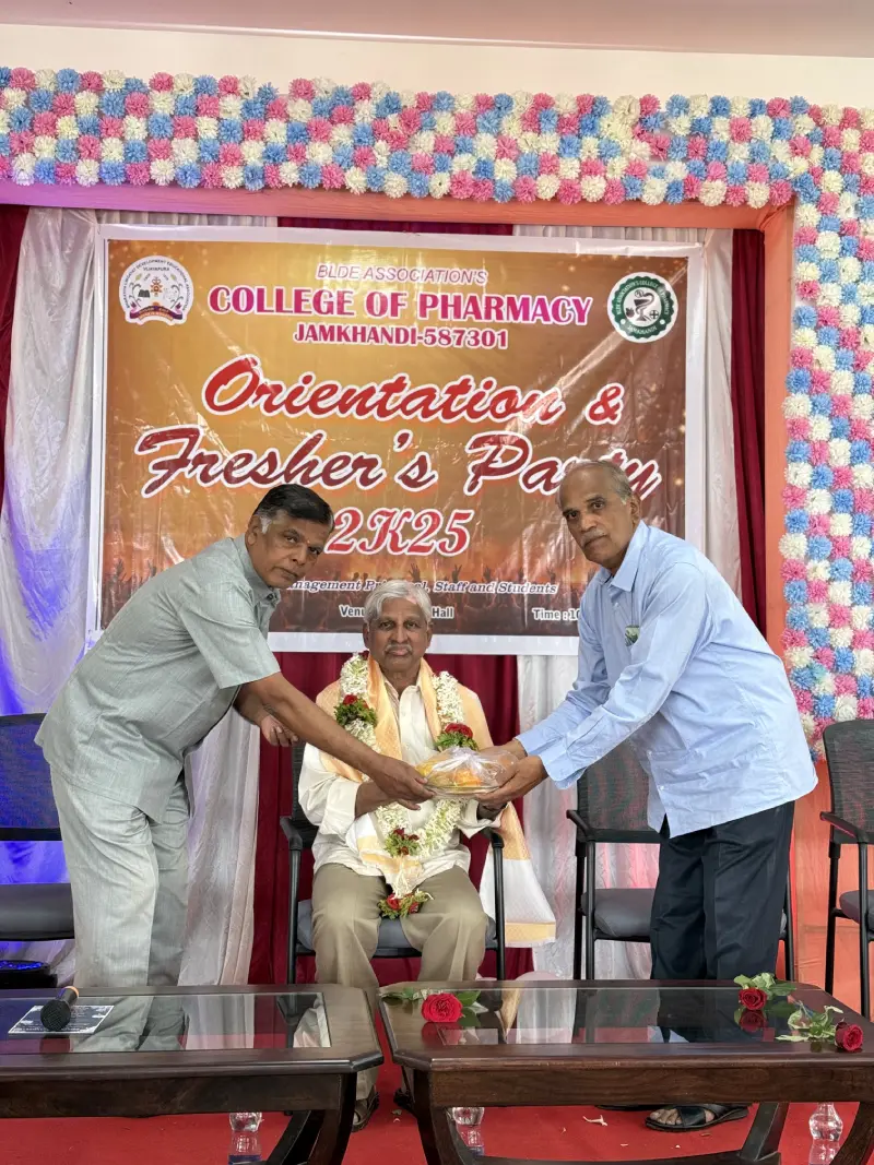 Orientation and Freshers Day was celebrated Orientation and Fresher’s Day was successfully conducted on 24th December 2025 at *BLDEA’s College Of Pharmacy, Jamakhandi.* The program began with an inaugural address by Principal *Dr. B Shivakumar,* who highlighted the institution’s vision, values, and expectations. Faculty members introduced the academic structure, rules, and various student support services, helping freshers understand campus life and academic requirements, *Chief Guest Dr. H G Daddi and Presidential remarks by Prof. S H Lagali* , inspired students greatly.